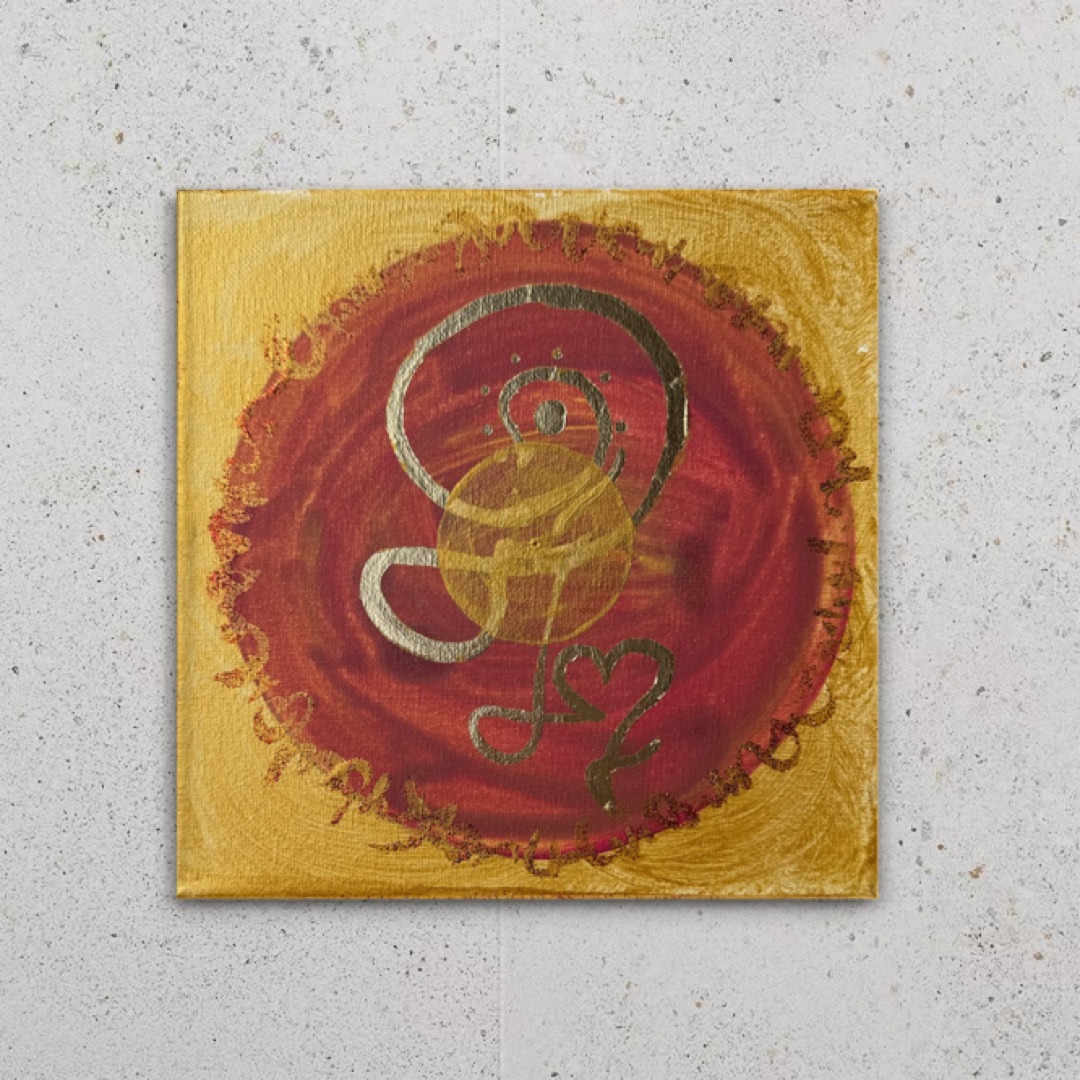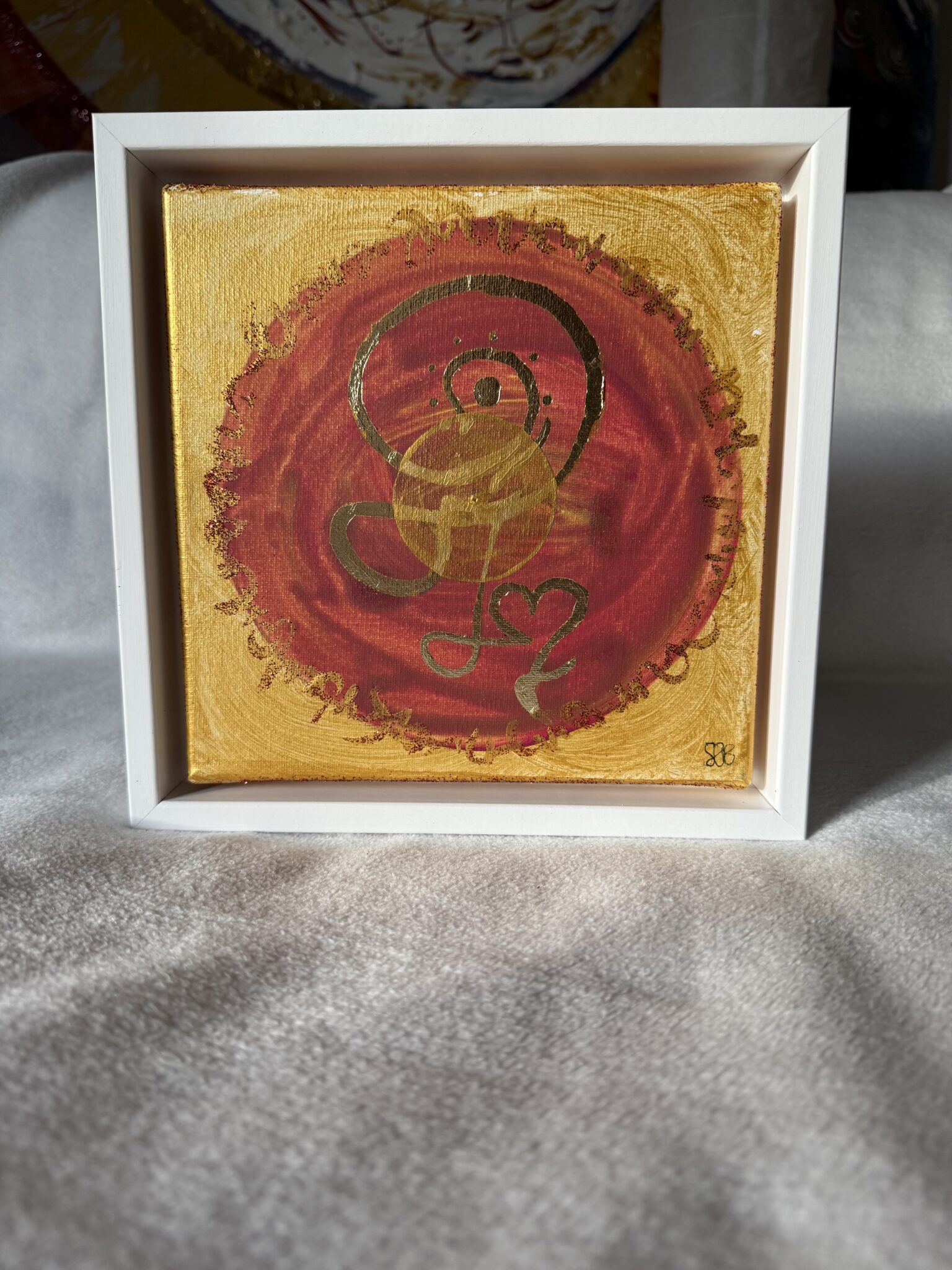24×24 cm mit Rahmen – Acryl & Strukturpaste auf Leinwand, veredelt mit Gold und Glitzer im Rahmen