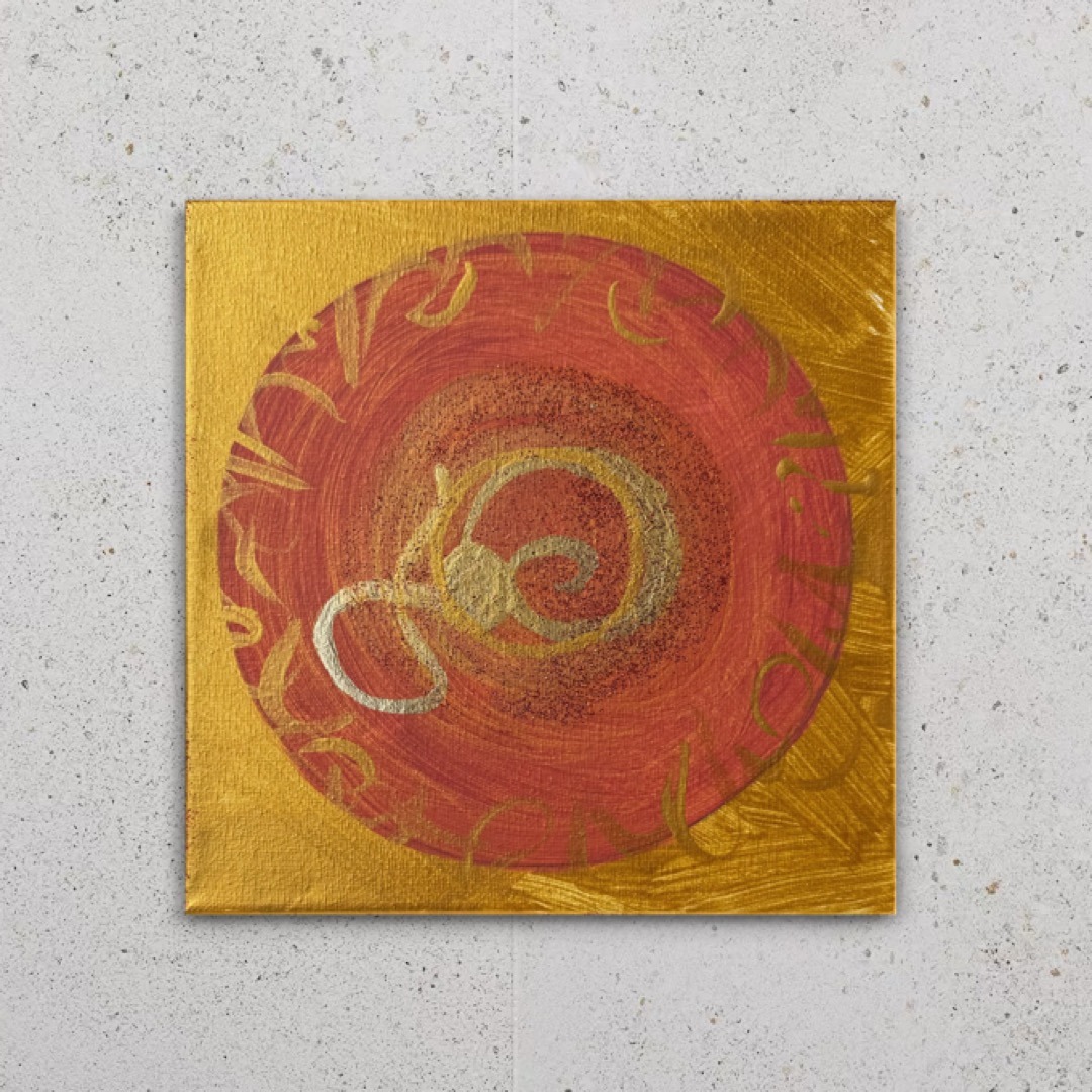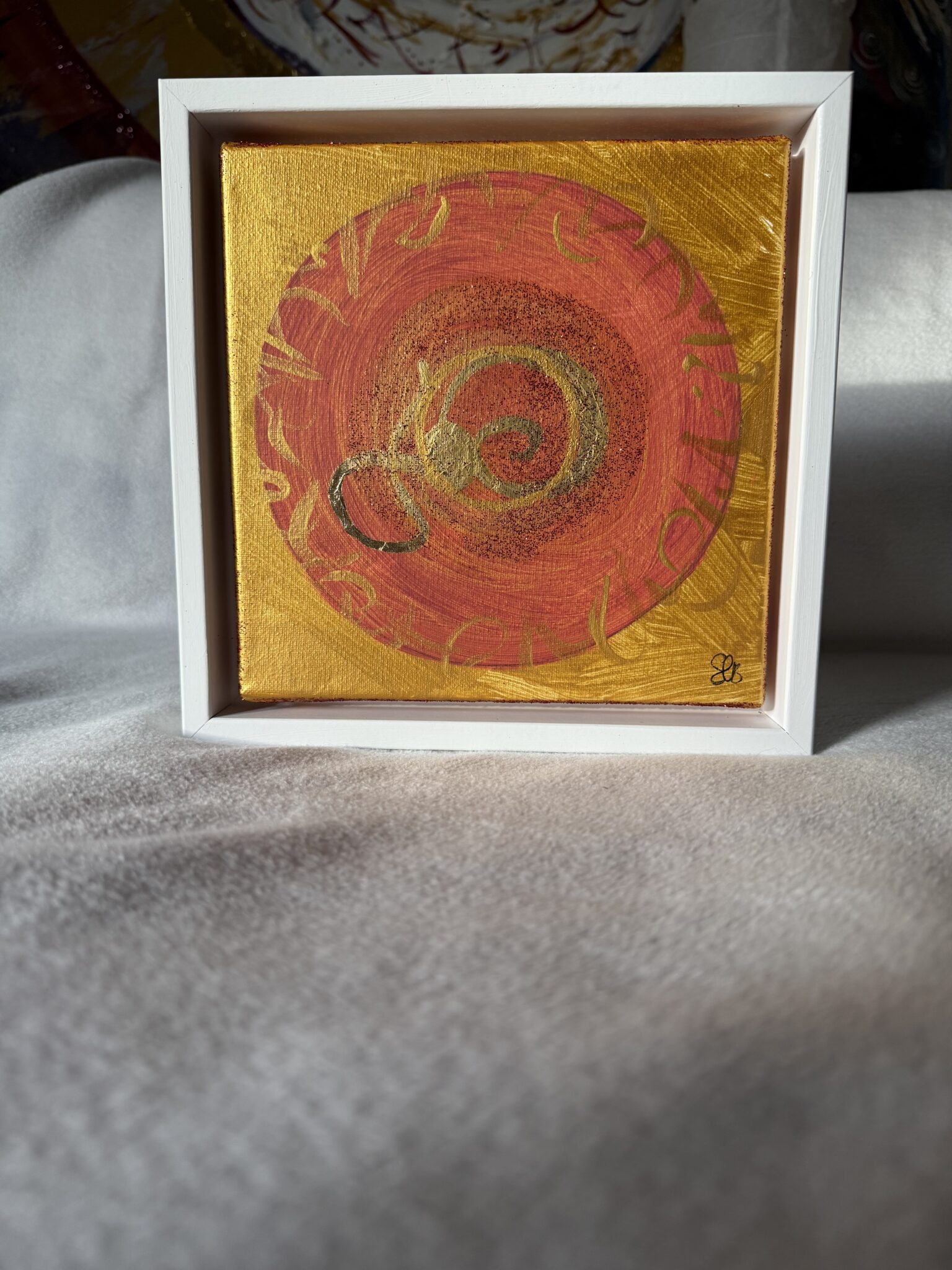 20 x 20 cm im Rahmen – Acryl & Strukturpaste auf Leinwand, veredelt mit Gold und Glitzer