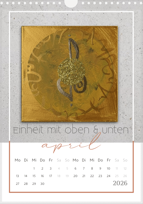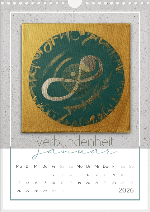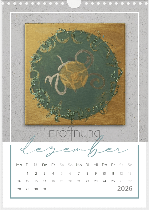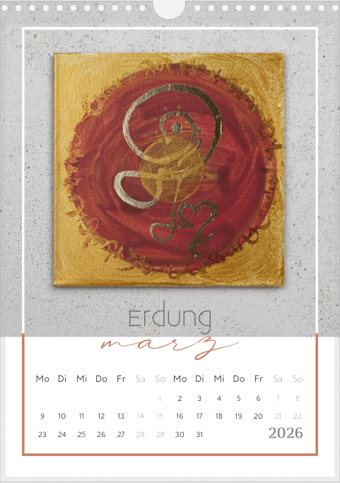 Dieser Kalender trägt zwölf von mir empfangene Zeichen – jedes einzelne ein hochschwingender Bewusstseinsanker mit seiner ganz eigenen Frequenz. Ob Fülle, Leichtigkeit, Erdung oder Vertrauen: