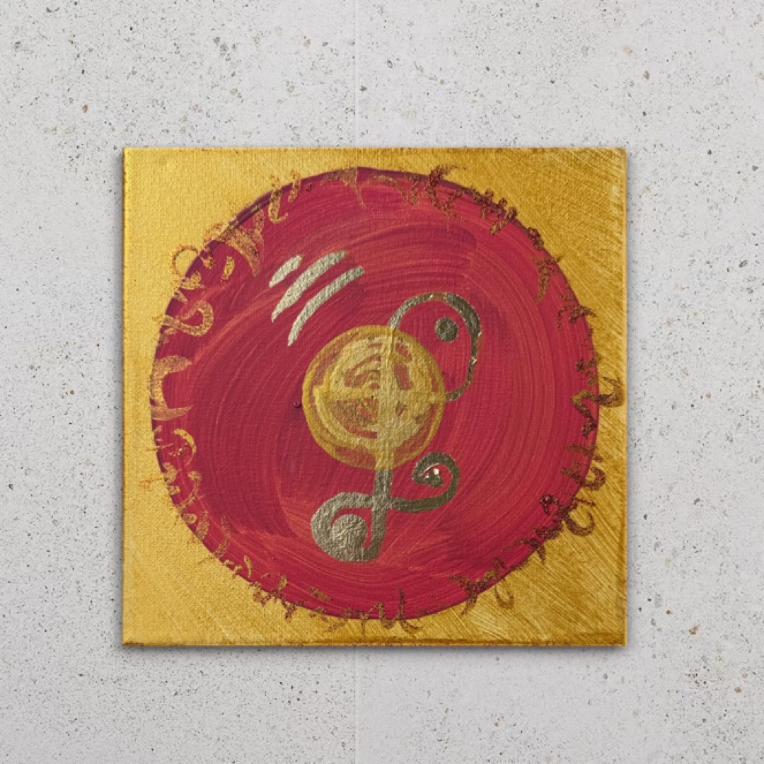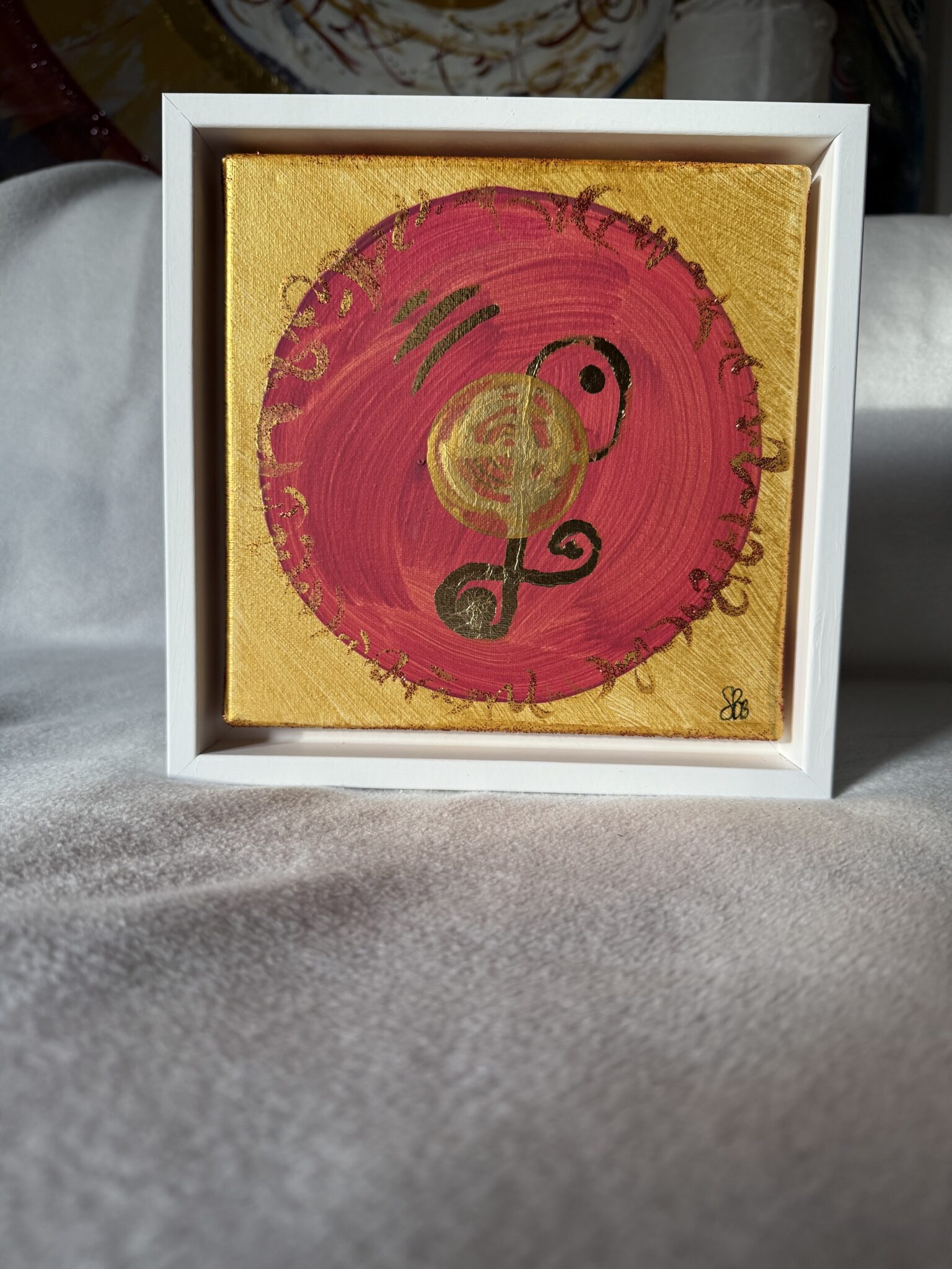 20 x 20 cm im Rahmen – Acryl & Strukturpaste auf Leinwand, veredelt mit Gold und Glitzer